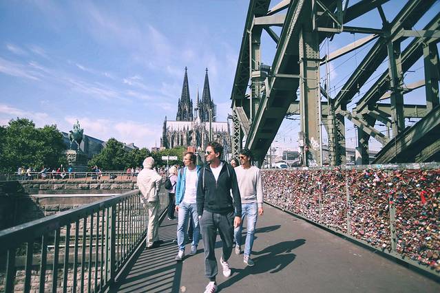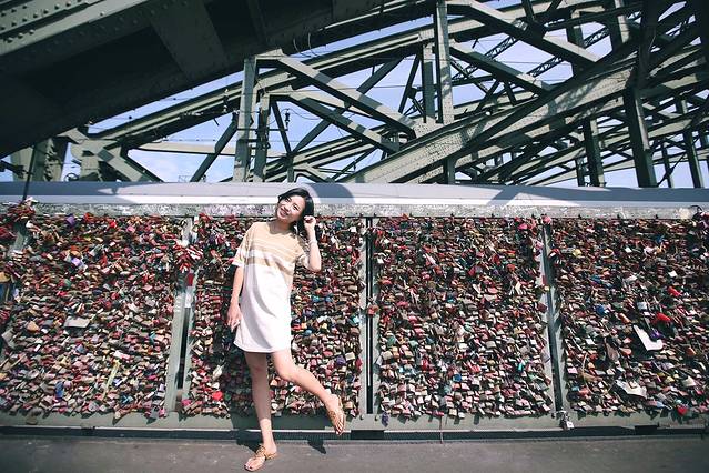 在离科隆大教堂不远处的霍亨索伦桥上,被挂满了情侣恋人的爱情祝愿,与硬化十足的大桥形成了对比,好一个以柔克钢啊。