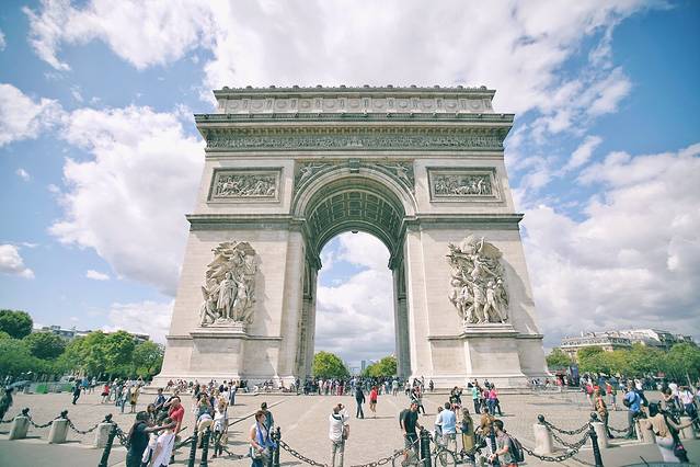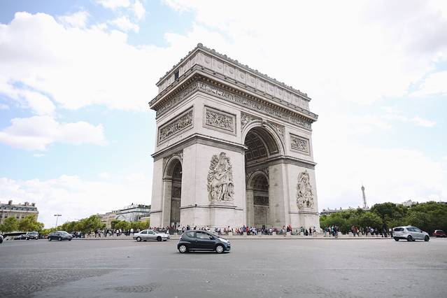 随后我们乘坐大巴来到凯旋门,看到实物觉得非常震撼。跟埃菲尔铁塔一样,这里也是超级多的游客。
