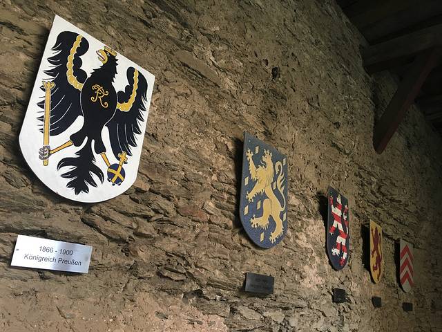 走过一大块巨型石板路,首先映入眼帘的是占有过马克斯堡的家族徽章