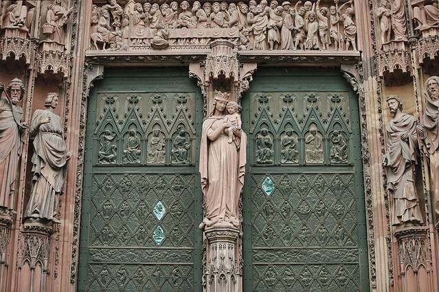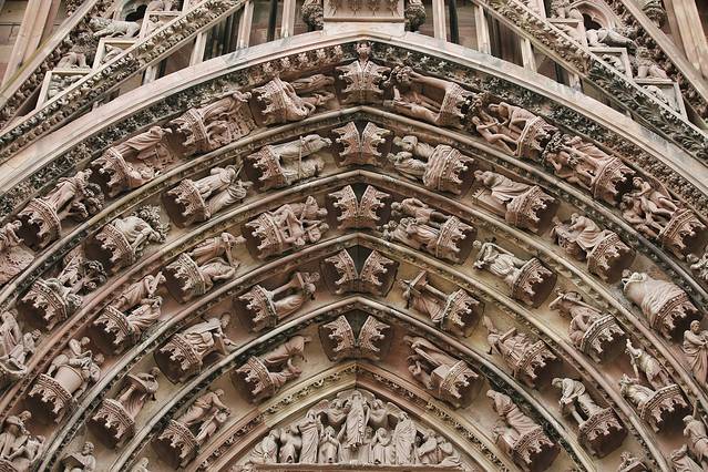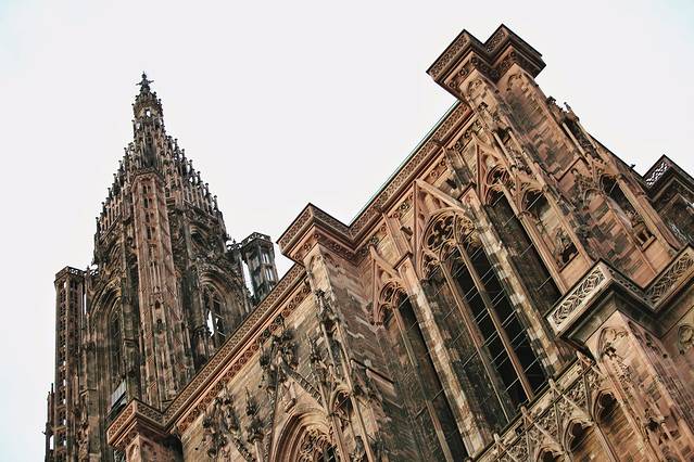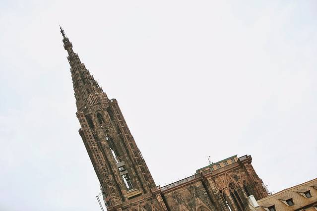圣母大教堂,最为新奇、最具德国特色的法国教堂,外部覆盖了暗粉色、华丽雕刻的孚日山脉砂岩,是1176年哥特式建筑盛行的标志。叔叔阿姨来了兴致,进入教堂,爬上330级台阶,到达尖顶的底部,俯瞰整个城市、孚日山脉和黑森林。回来之后,跟我念叨:太精致漂亮了。