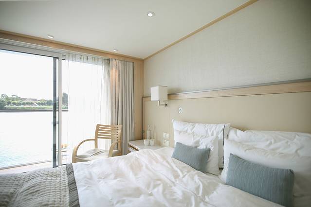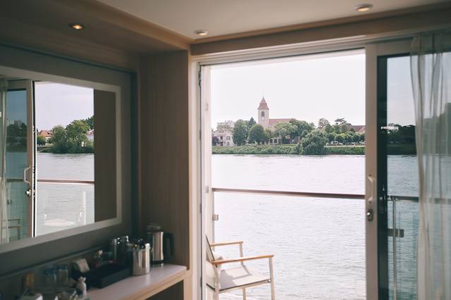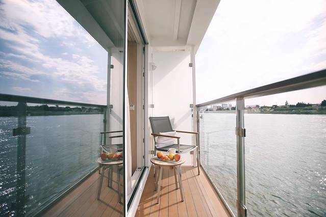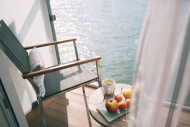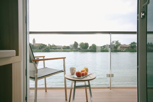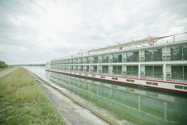 这是维京游轮停靠在斯特拉斯堡的港口时我抽空照的游轮船身,我住的房间在三楼,上面就是甲板了,叔叔阿姨的房间就在我们楼下,也是同款精致阳台房。