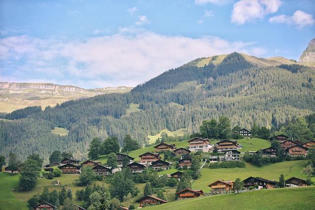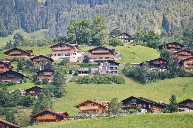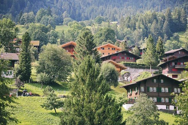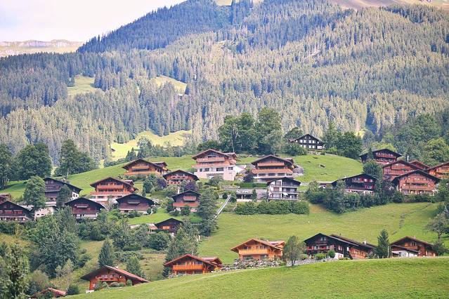 刚下了维京游轮的巴士,不由地被这绝美风景惊叹,小木屋错落有致,草地茵茵,树木茂盛,这不就是孩提时看得漫画童话书里描绘的风景吗?还有一位欧洲少女穿着民族服饰奔跑在雪山脚下的山坡上。