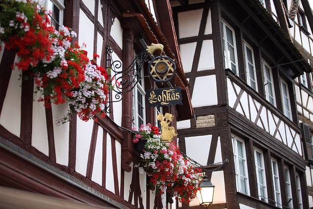 鹅卵石大街、街道两旁的木质房屋,来到这里,最值得领略一番阿尔萨斯的咖啡文化,在优美的砖木结房屋里喝着咖啡,吃着蛋糕,再惬意不过了。