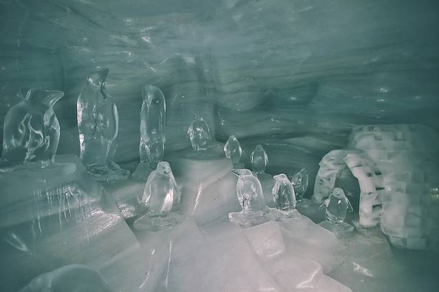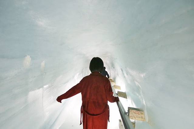我们四人首先到达冰宫,这个冰宫位于少女峰观景台下20米处,由长长的走廊通向洞穴处的房间和大厅,寒气逼人,脚下还很滑,但是内部晶莹剔透的小企鹅冰雕很治愈我。