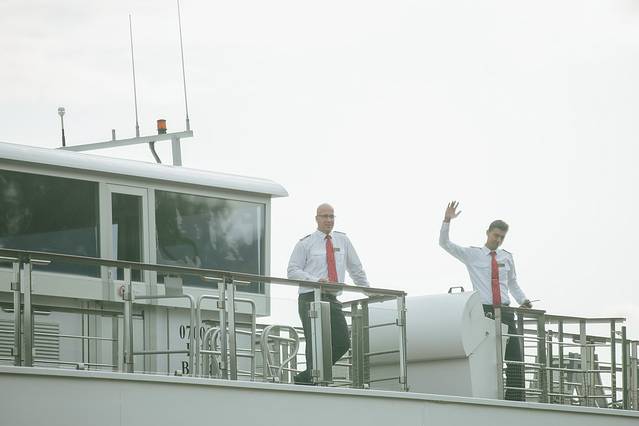 哈哈这两位是我们本次艾斯特拉号最重要的人,右边挥手的帅哥就是船长Lonut Raileanu,剃光头这位帅哥跟船长一起负责轮流驾驶,貌似是副船长。