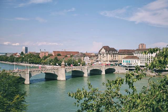 作为瑞士第四大城市,它坐落于瑞士西北的三国交界(瑞法德),西北方毗邻法国阿尔萨斯,东北与德国南北走向的黑森林山脉接壤,而莱茵河在此由东向北穿城而过,把巴塞尔一分为二。