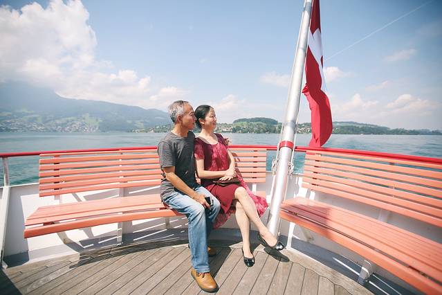 搭乘观光游轮徜徉在卢塞恩湖上,是再好不过的游览方式,因为这蔚蓝琉璃般的水面,我更喜欢叫她琉森。