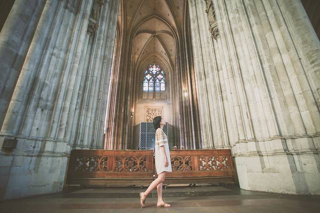 在大教堂里,我仿佛进入了一个丰富又久远的时空。教堂内部顶部高耸,甚是壮观。
