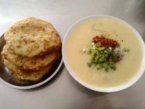 吃油膏当然要配上稀豆粉,卖油膏饵块的地方都能买到稀豆粉,稀豆粉以豌豆为主要原料,熬制成鹅黄色的糊状,飘散着淡淡的豆香。我还喜欢撒上点葱花和辣椒面,再放入刚刚炸好的荞皮,酥酥脆脆,吃一口油膏,喝一口稀豆粉,这就是昭通的早晨!