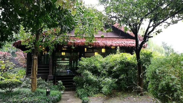 东园的茶室:茅屋、雨、书、茶、风铃,温馨的灯。