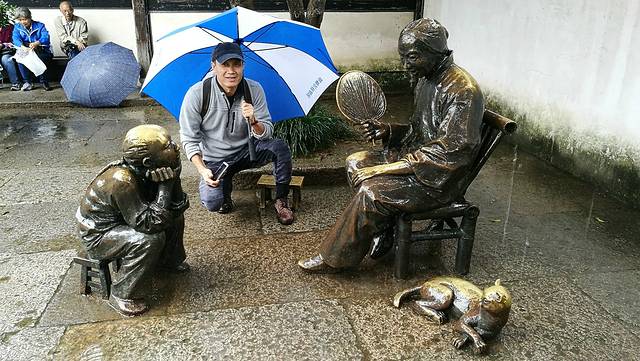 这天来鲁镇参观,和景区的演员“阿Q”,聊天。惊闻上海的“阿Q”严顺开当日去世,悼念,艺术家一路走好!