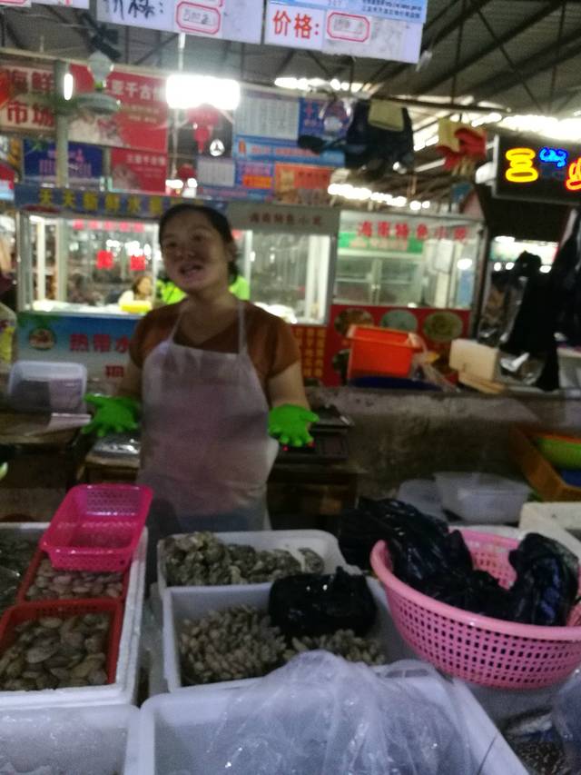 入住后,打滴滴车去下岗职工海鲜加工场,10分钟10块钱。后来发现很近,回来就沿着海滩慢慢走回来呢,这个海鲜场比第一市场便宜很多的海鲜城,也是购买加工一个市场。非常的透明,全程都在小O童鞋的督促下购买加工的,味道非常棒,服务也周到,价格很公道(红石斑鱼,大龙虾,芒果螺,海胆,生蚝一共花费300多点儿),撑的不要不要的呢,开心呢,感觉没有被坑多少吧。。。