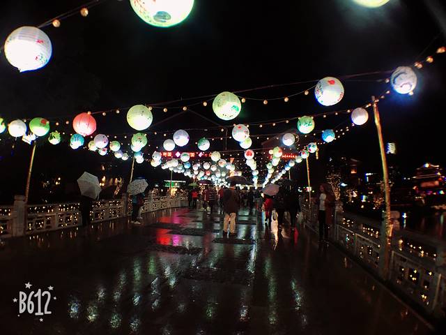 到阳朔不能不去西街,于是当天晚上便决定前往,虽然下雨,但是依然热闹。街上的人熙熙攘攘的,彩色的灯笼穿了一串又一串,配着小雨显得格外美好。