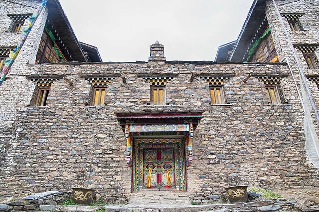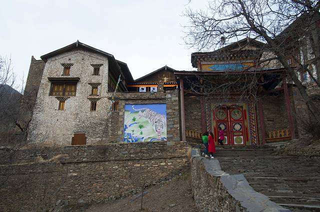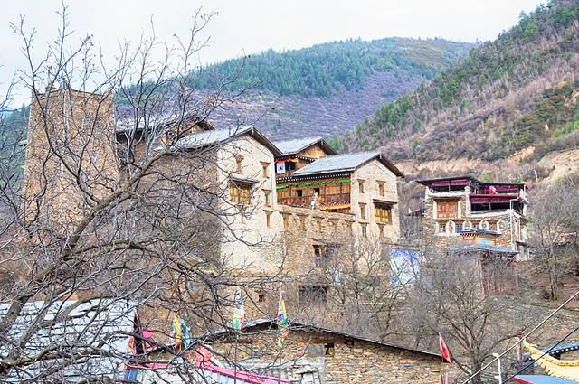 甲居的藏居又不同于中路那样全身洁白,而是以石头的原色为主,白色只是和朱红一样成为点缀色。而且这边以民居为主,碉楼的数量大大减少。两个地方各有特色,又难以替代。