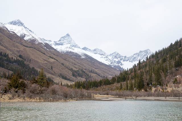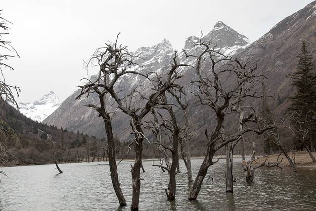 季节变幻,四姑娜措中的枯树依然屹立于雪山面前。