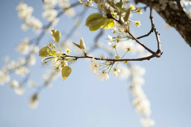 太阳越升越高,底下阳光照耀的梨花也越来越明亮。