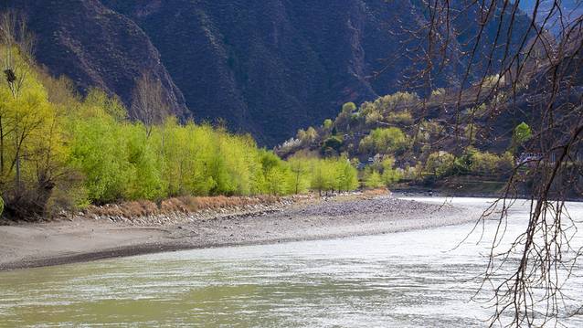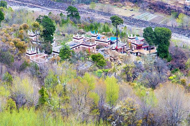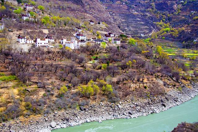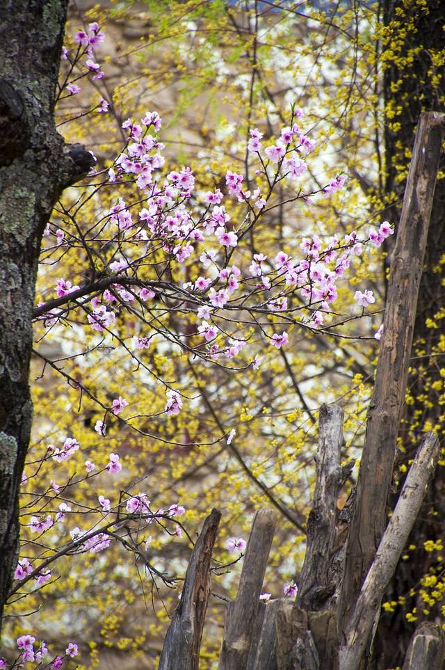 沿着小金川一路往丹巴走,河谷两岸除了盛开的梨花就是这些色彩夺目的彩林。春天的彩林不像秋天的那么浓烈,却有一番淡雅美丽。