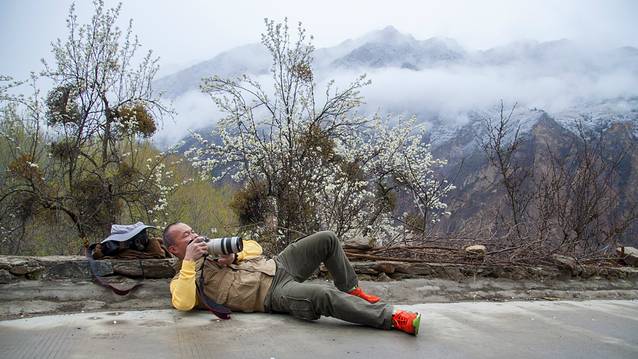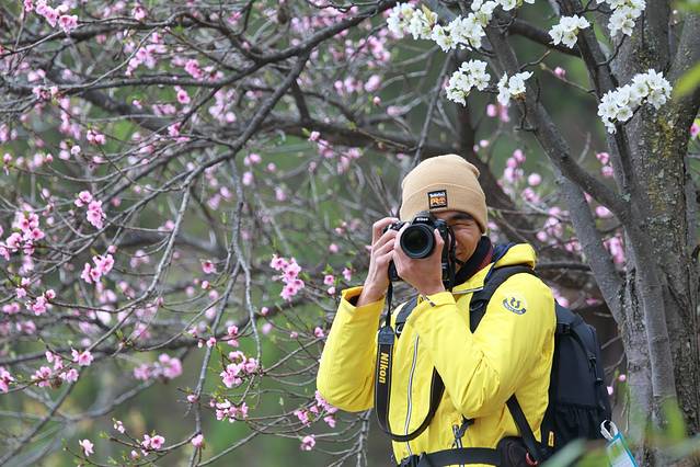 等待光线是个漫长的守候,正遇上多云天气,阳光没有像往常那样按时普照大地。阴沉的天气,漫山的梨花也显得格外暗淡。我们只好耐心地等候。