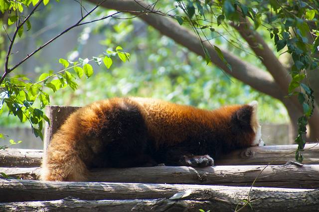 除了大熊猫,这里还有小熊猫,也是懒 洋洋地在睡觉。所以如果想看熊猫还是一大早趁它们精神好的时候来会好很多。