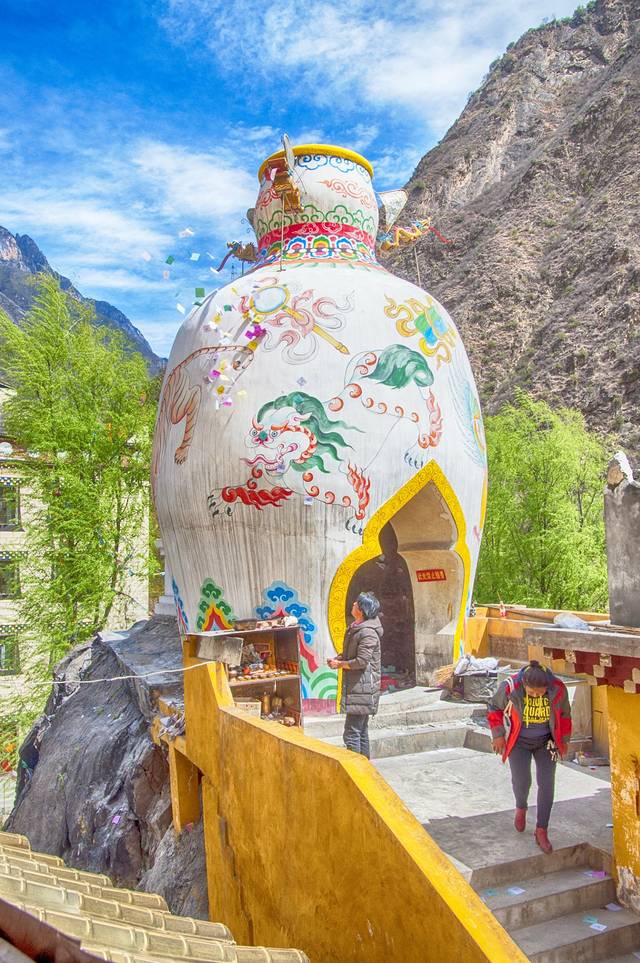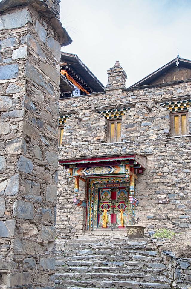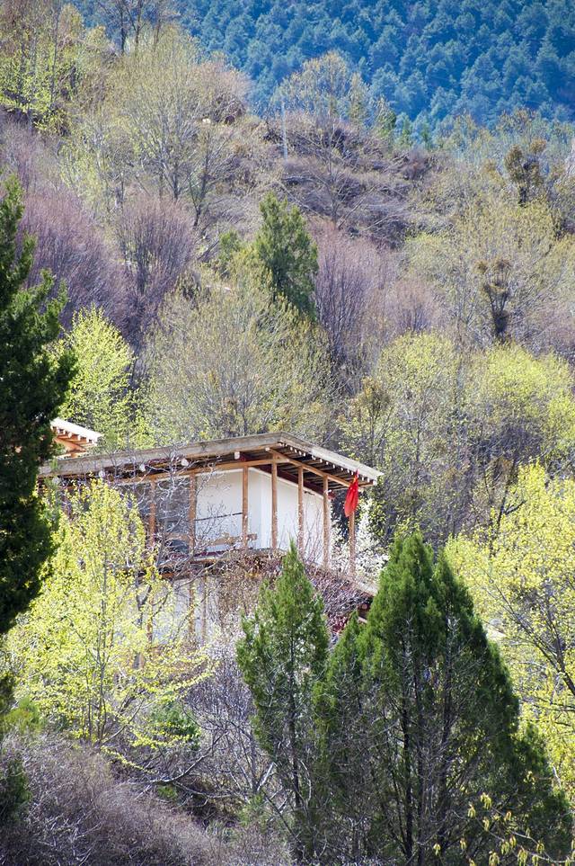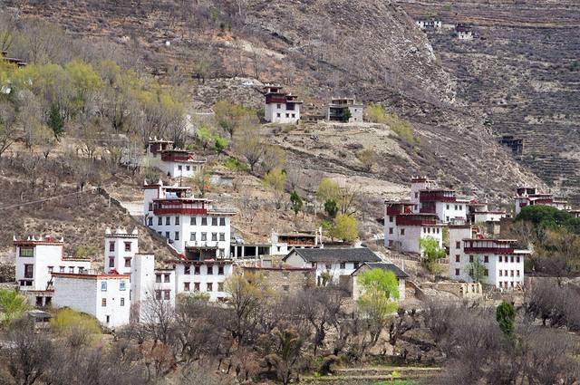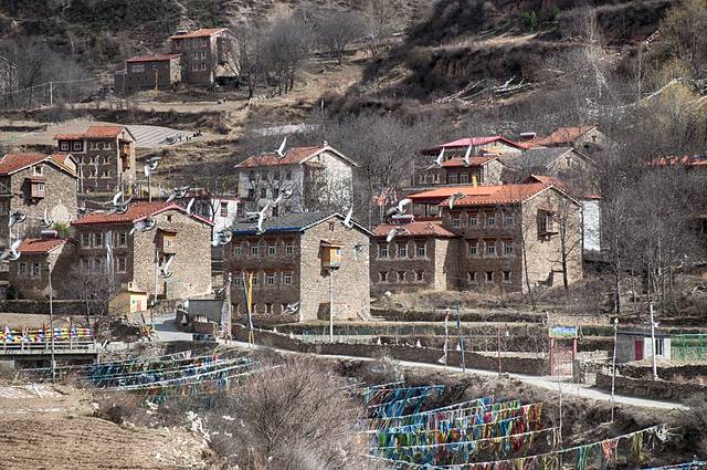 藏族所崇尚的白色在这里的建筑中得到充分的体现。当地人用石头垒成房屋,外墙用当地的观音土或石灰抹上他们热爱的白色,红色部分为木头。藏民日常生活也许不一定十分富裕,但当建各自的房子时,常常倾其所有。