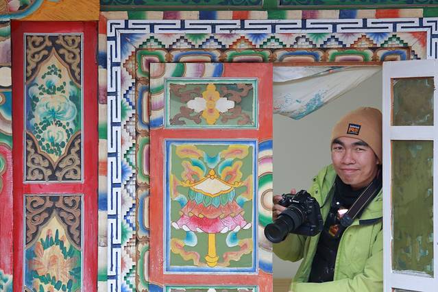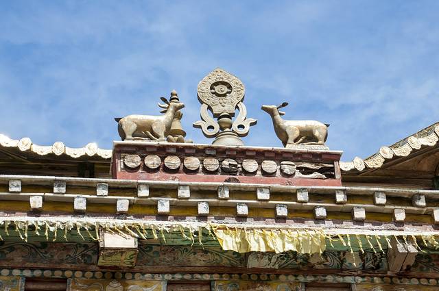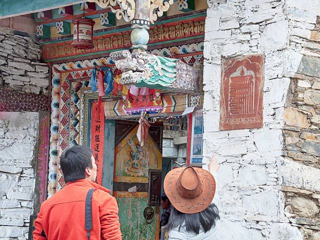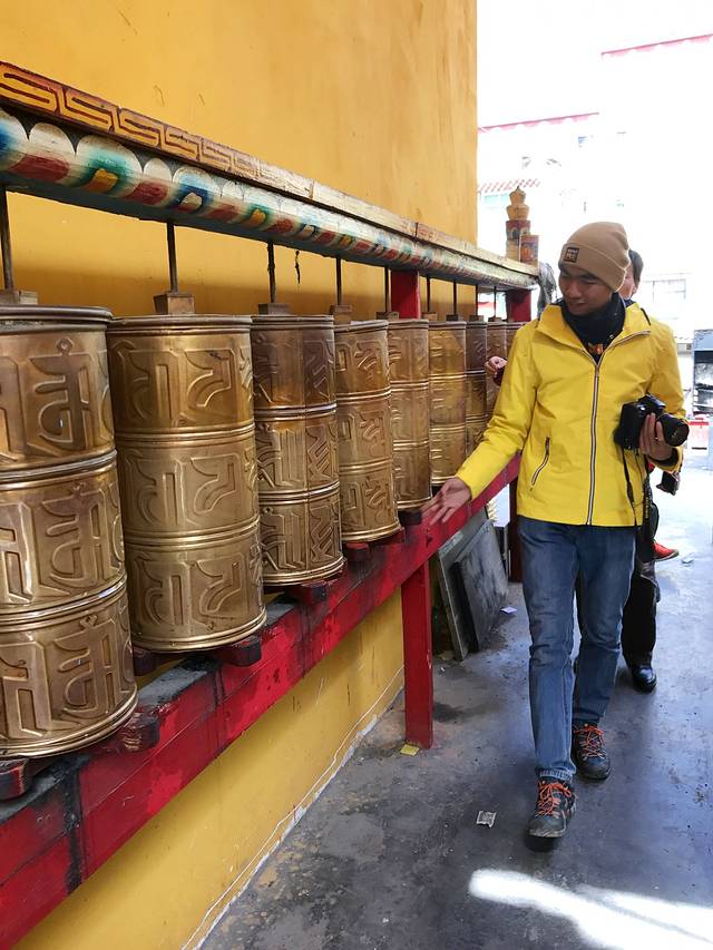 不时有附近的藏民前来参拜,我们也围着寺庙转了三圈转经筒。老陈更是逢庙必捐香油钱。恭恭敬敬地参拜一番。