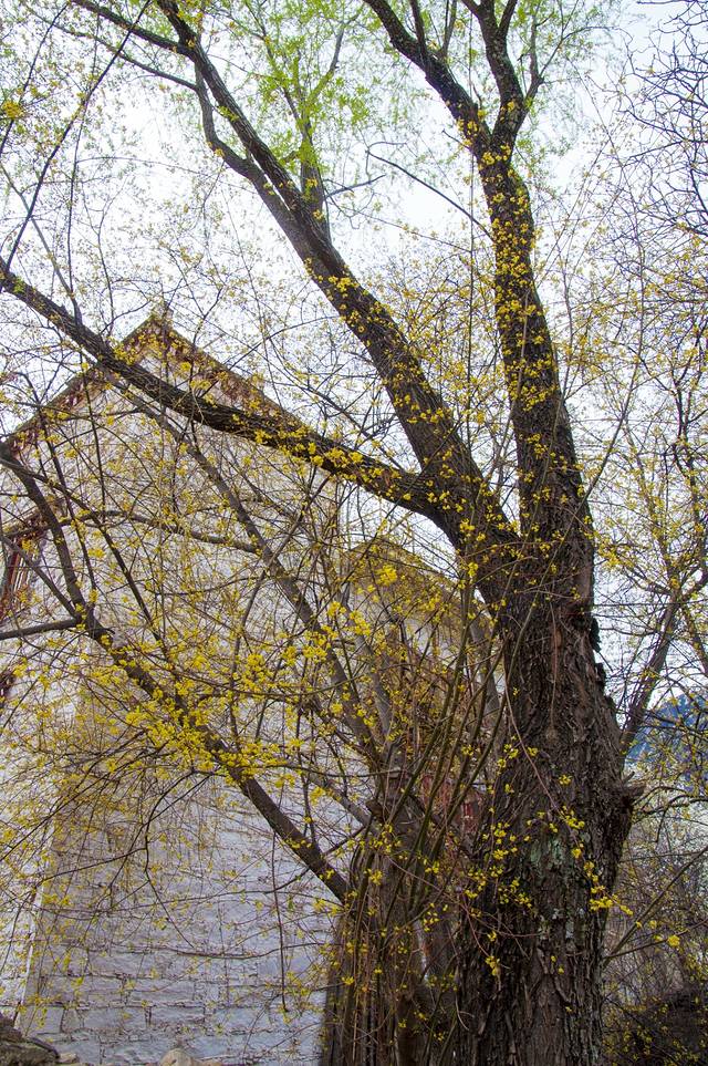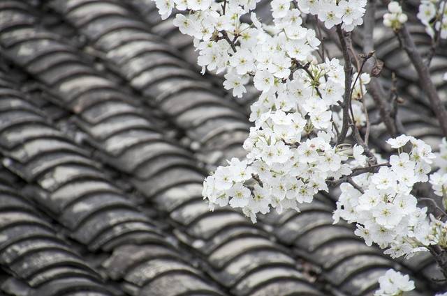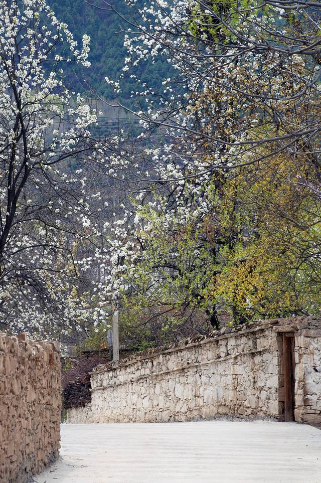 当地民居旁的老梨树,优美的身段盛开着洁白的花朵。