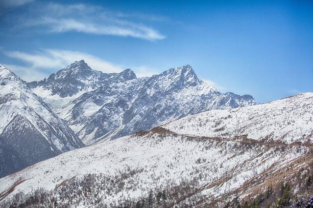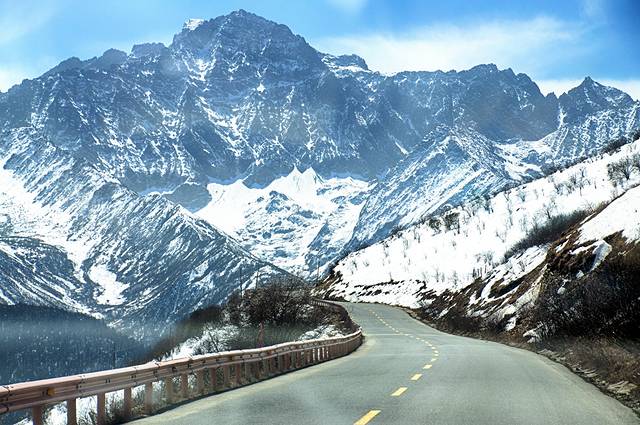 蜿蜒的省道穿行在雪山之中,真是让人心旷神怡。刚刚从东北回来的我都没见到那么多雪,感觉到特别兴奋。