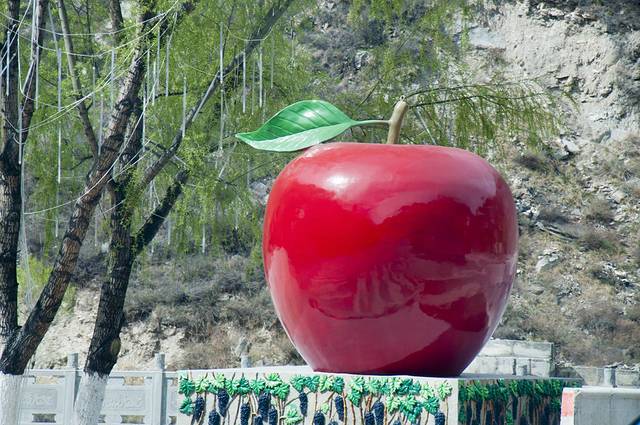 经过小金县城的时候,有一苹果的雕塑,说明了小金的本地特产是苹果。和后面在金川梨雕塑遥相呼应。