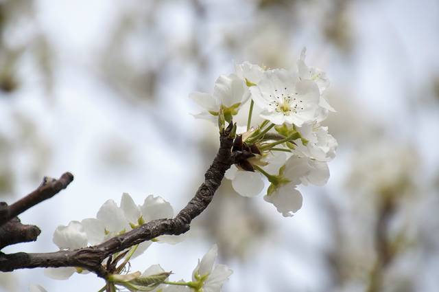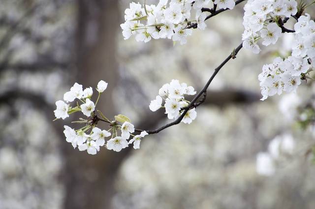 这洁白的梨花显然是刚刚绽放,特别特别白,没有半点枯萎的。