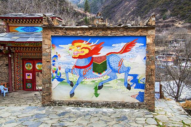 无论是那精美的木窗或是墙上的壁画,从每一个细节反映出藏族的种种风情。只有看了很多其它地方的藏居,才知此处仍然保留着传统的建筑形式。
