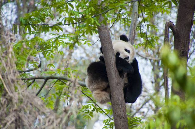 午后的熊猫总是懒洋洋地睡大觉,好不容易看到一只在树上 睡的。