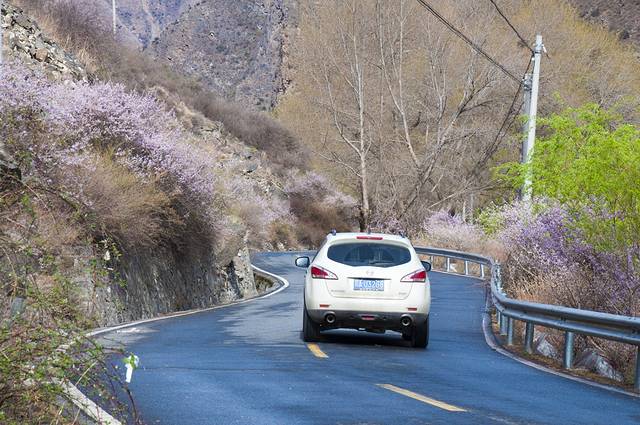 一路上可见盛开的梨花,在阳光下洁白无瑕。只要觉得风景不错的地方,我们都会停下来拍照。