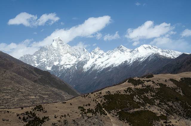 沟内枯黄的植被伴着巍峨的雪山是别有一番气势,但相对而言,我个人更喜欢夏天时那绿草如茵的感觉。