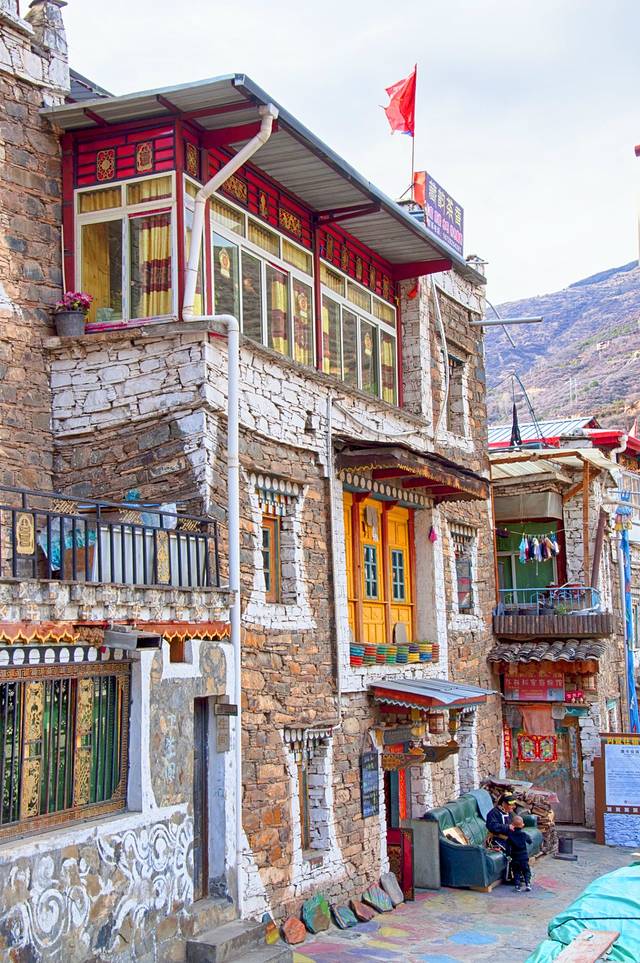 以前这些房子大都是对面卓克基土司官寨的科巴(差人)和商人、民间手工艺者。现在大部分改为各种客栈了。但依然有部分原住民的后代居住。