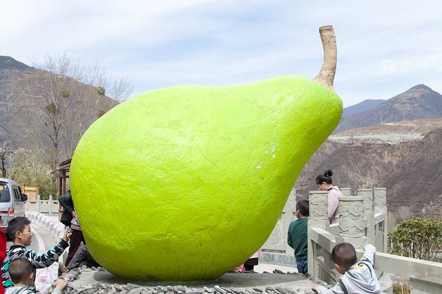 离开金川之前,路过这个有名的香梨雕塑。和我们之前经过的小金苹果正好配成一对。