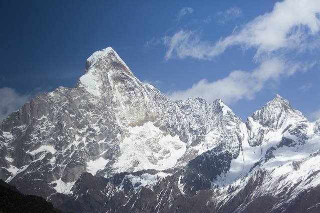 一行人一路对着一座座雪山惊叹不已,都说这个季节来看雪山真是一流。以往夏天过来山尖那点点仅有的积雪还被深藏在云朵下面。