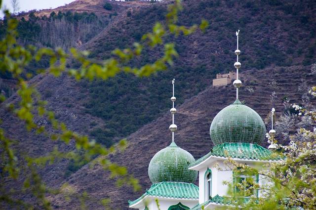 山下的新建的大佛寺和清真寺相隔不远。它们和村落融为一体,也正如它们的关系,这里的民众早已经和睦相处多代。