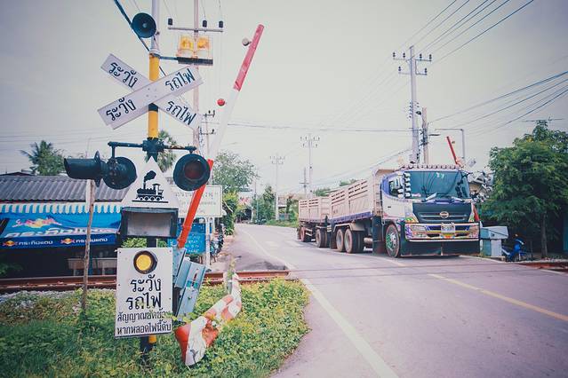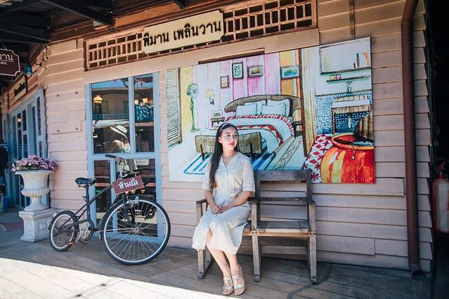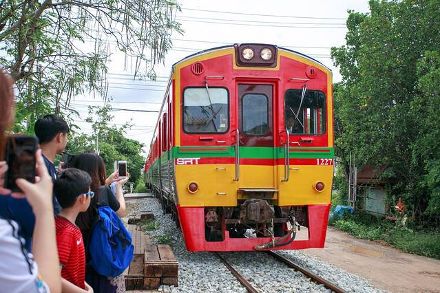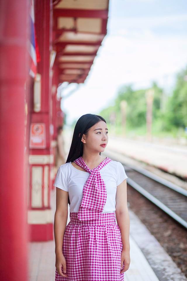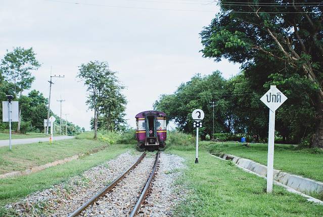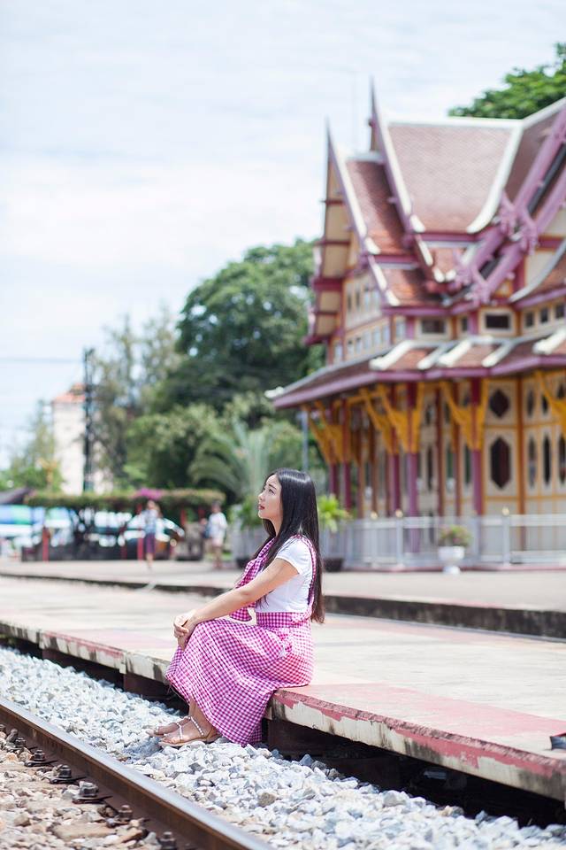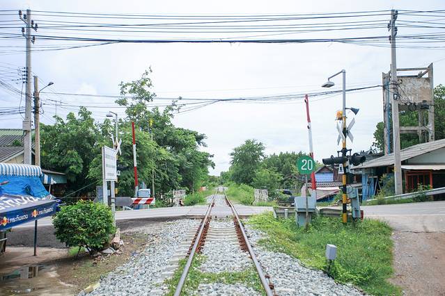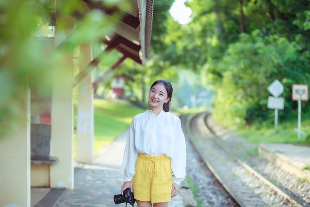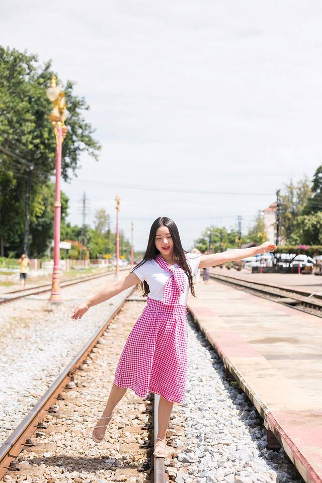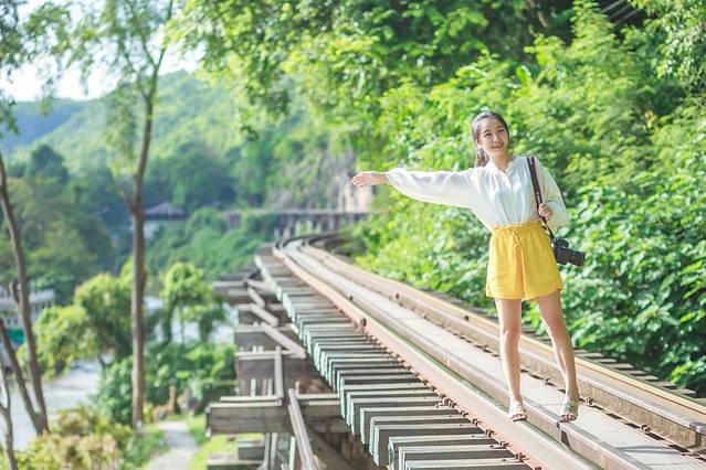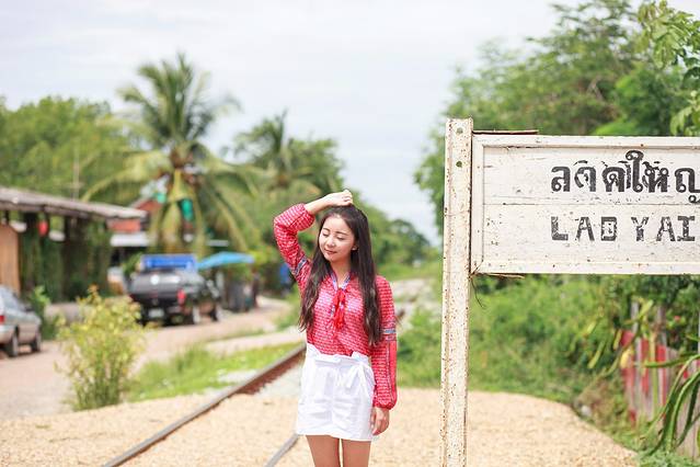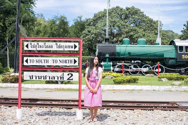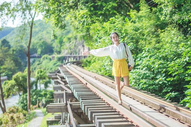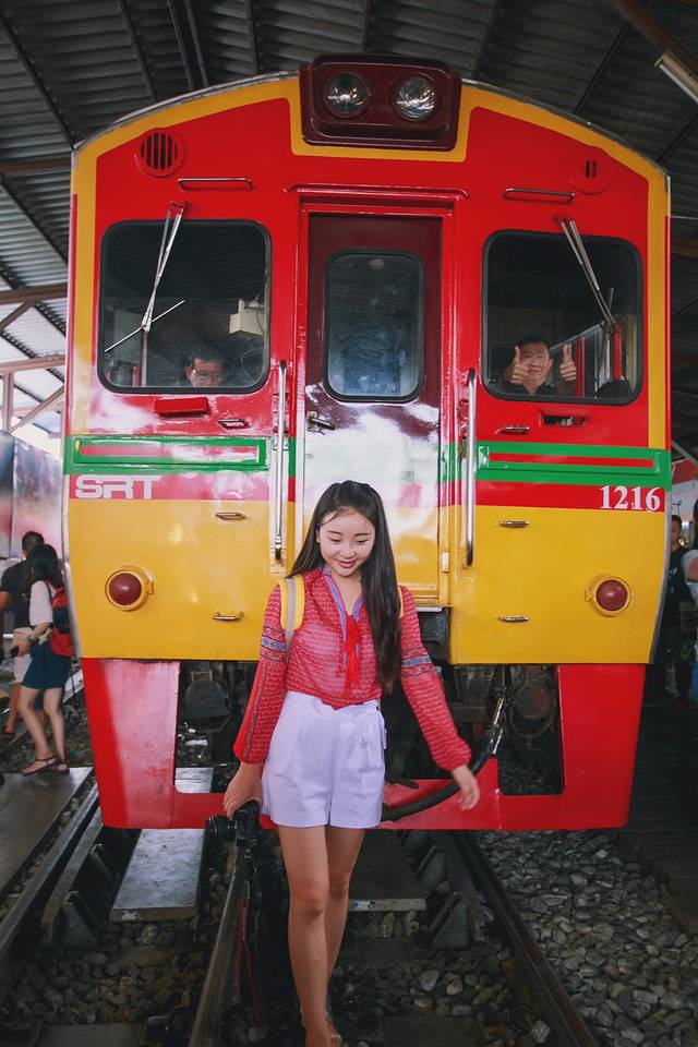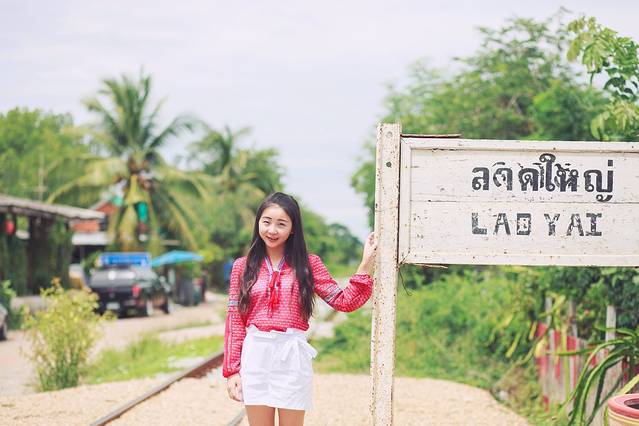 趁着火车还没来,和小伙伴在铁路旁边拍照玩。泰国的第一天,就算是一条简单的铁路,我们都能拍的很高兴。