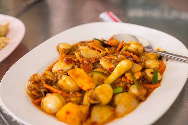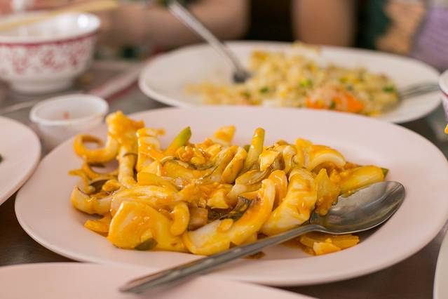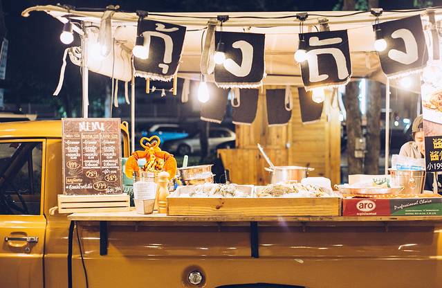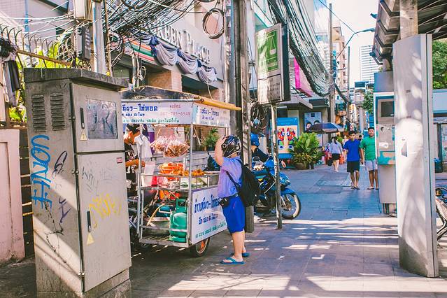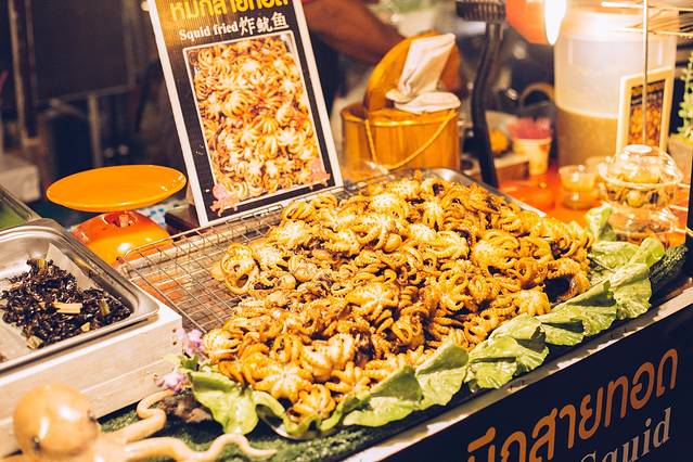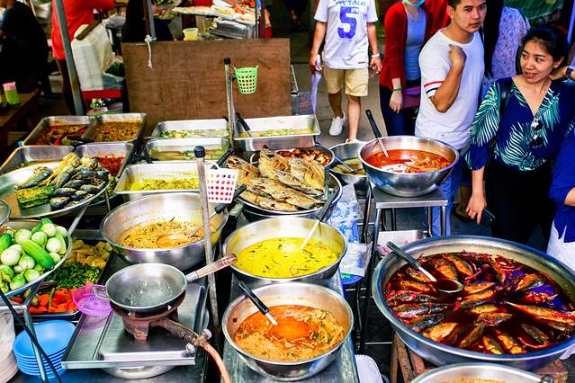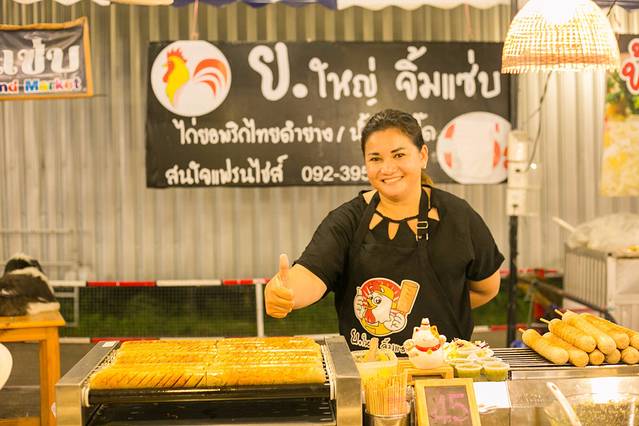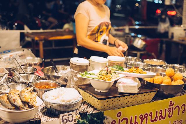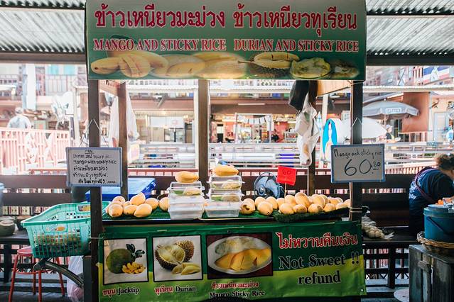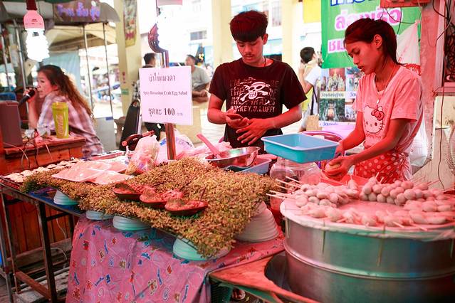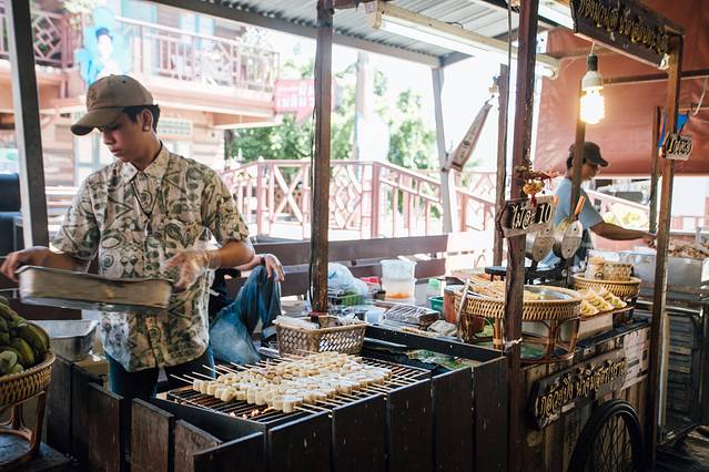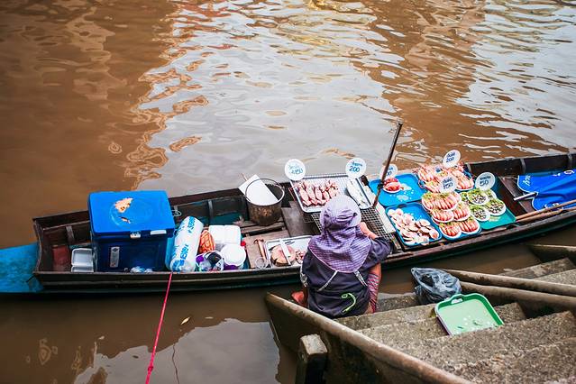 安帕瓦是小贩的天堂,他们的船只上装满各种食物和饮料,如贻贝、面条、咖啡、水果等,有的船上甚至支起了烧烤架,在船上做着各种美味佳肴。