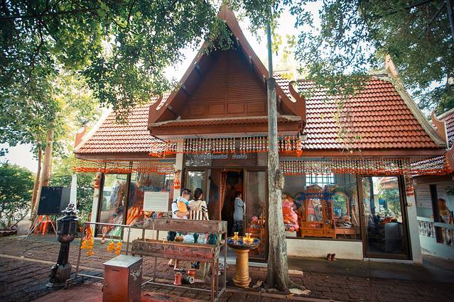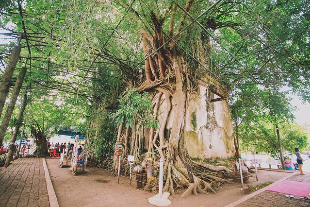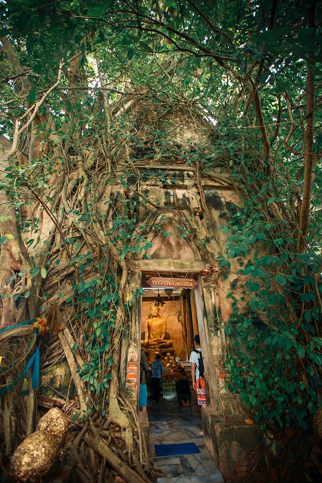 泰国十大灵验的佛寺之一,在距曼谷65公里处的安帕瓦府,这是一座400百年老树环抱200年历史的树中佛寺,古朴斑驳少有人工斧痕凿作。