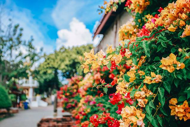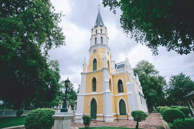 这座黄色的西式教堂便是安娜教堂了。从外部看,这个教堂和一般的教堂并没有什么区别。但是在泰国这里却是唯一一座泰式与西式合并的教堂了。外部是西式教堂的造型,里面供奉的却是泰国的佛。