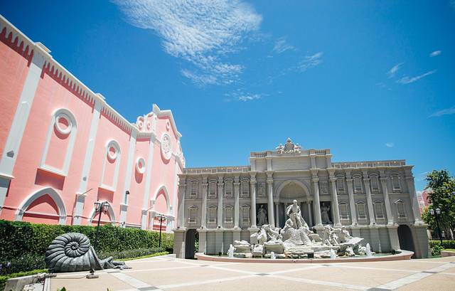 御湖中间横跨的这座石桥,桥两侧的石栏杆上是希腊神话中的女神——农神、海神、音乐神、爱神的雕像。欧式的建筑造型和泰式建筑毫无违和感。