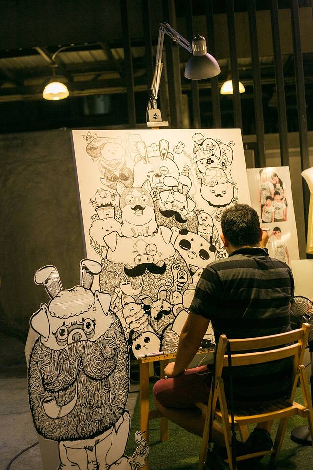 一楼有一个大的美食广场,里面的每家店装修都超有特色。