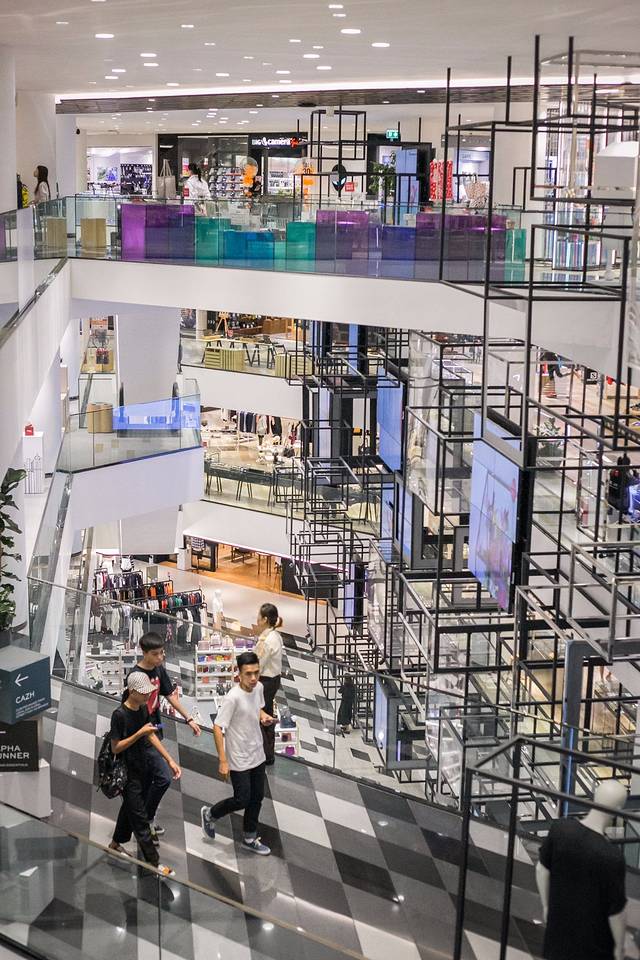 Siam Center这次走的是夜店风格,融合了很多最新科技手段以制造出现代感十足的店内氛围,比如天幕、激光、电影等元素。店里集合了众多泰国设计师品牌与一些国际流行品牌,店面陈设设计感十足,光是看着就有购物的欲望。