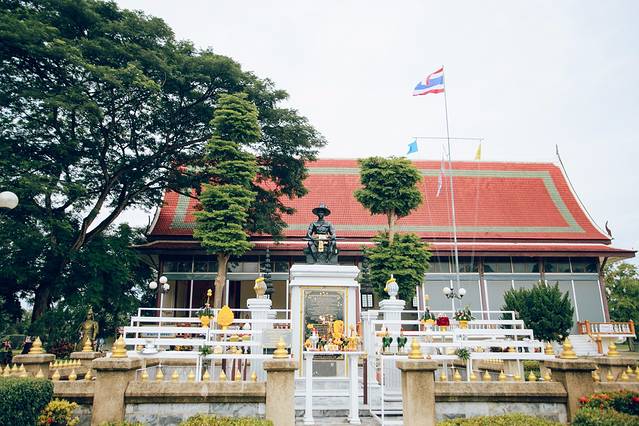 在树中庙的旁边的雕像是郑王,他是泰国第41代君王,民族的英雄,曼谷的郑王庙就是为纪念他而建造的。