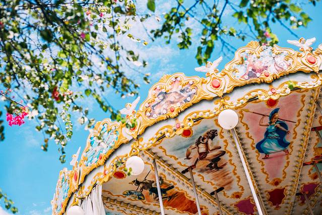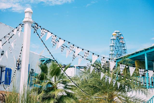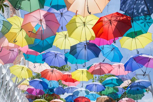 原本以为是满载鲜花和食物的船只,被架上了这样伞,少了一些乐趣。