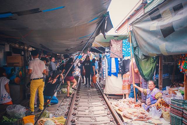 美功铁道市场,泰国最有意思的菜市场。火车进站到离开,商贩们熟练的收摊出摊,不过分分钟的事情。到一个地方体验当地特色,总是很有意思。