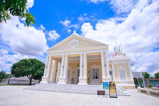 挽巴茵行宫:称泰国夏宫、邦巴因王宫、挽巴茵夏宫、班帕因夏宫。它位于泰国古都大城以南25公里,曼谷以北58公里,坐落在湄南河左岸。从阿育塔雅王朝起这里就成为皇族的避暑之处,在泰国东西南北中五处行宫中,以此处离曼谷最近,也是建筑规模最大,造型最美一处行宫。