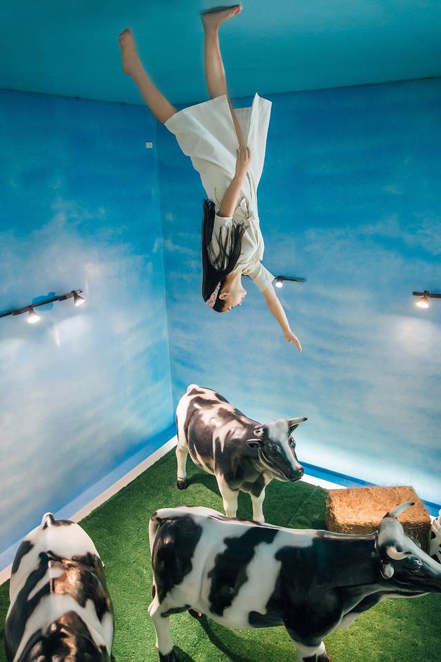 这条蓝色的走廊很好看,“我想在这里拍几张”,因为这里能遮住太阳,所以这成了大家自拍和拍合照钟爱的一个点。