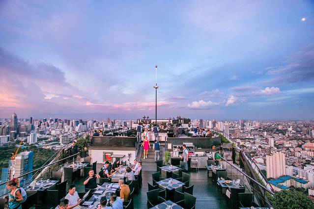 在这里还可俯瞰曼谷最大的市区公园—–Lumpini公园。独特的建筑造型,360度可观景,毫无遮挡。最佳的观赏时间是下午5点-7点,运气好的话可以看到日落和晚霞。